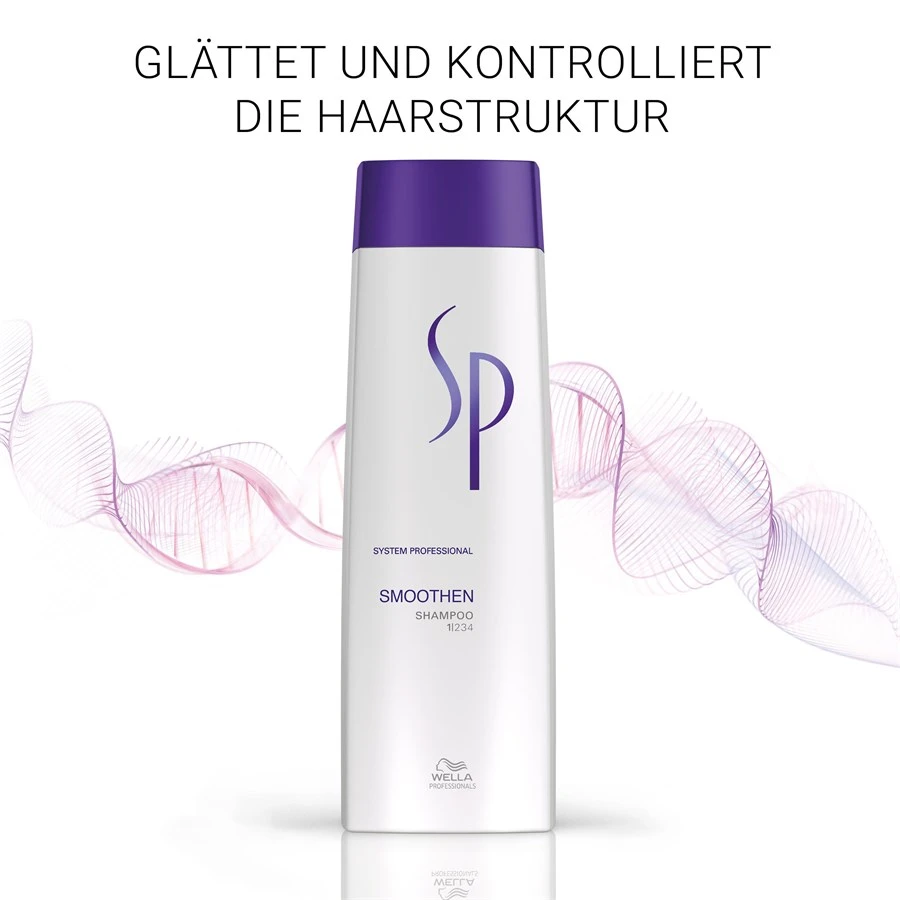 Le Smoothen Shampoode Wella SP nettoie les cheveux de manière contrôlée et lisse la structure des cheveux. Il adoucit les cheveux et les rend résistants, lisses et souples.
